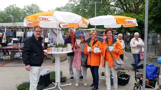 Am 11. Mai 2018 verteilte der OV Langendreer am Eingang des Marktplatzes anlässlich des bevorstehenden Muttertages 200 Männertreuplanzen an Passantinnen...