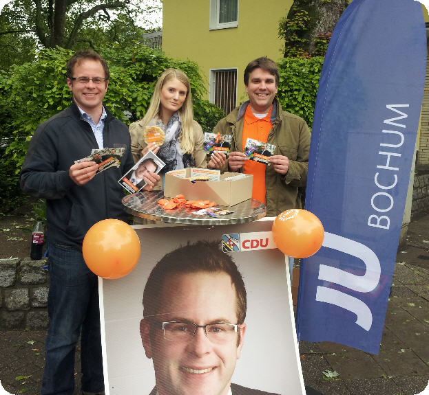 Nach Teilnahme am Rundgang durch Wattenscheid-West/Leithe hat das CDU-Wahlkampfteam in Leithe seinen Wahlkampftisch wieder aufgebaut. Bei leichtem Nieselregen verteilte das Team neben Infomaterial für die Kommunalwahl auch ausreichend Flyer des CDU-Europakandidaten Dennis Radtke. Die Kandidaten für die Kommunalwahl Christoph Jung und Karsten Herlitz haben Fragen der Bürgerinnen und Bürger beantwortet.