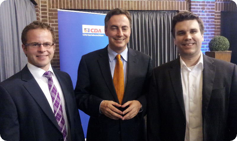 Der Spitzenkandidat der CDU für die Europawahl am 25. Mai David McAllister, der Kandidat der CDU Ruhr für das Europaparlament Dennis Radtke, der Parlamentarische Staatssekretär und Landesvorsitzende der CDA Dr. Ralf Brauksiepe sowie der Bundesvorsitzende der CDA Karl-Josef Laumann waren die geladenen Gäste und Redner des Abends.