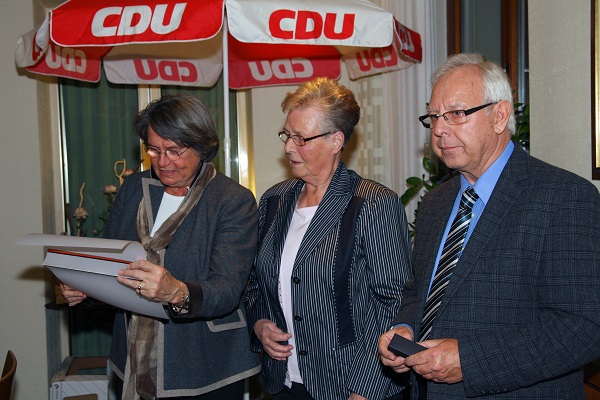 v.l.n.r.: Frau Thoben, Frau Lorenz, Herr ChristophFür ihren engagierten Einsatz in der Christlich Demokratischen Union (CDU) und für treue Verbundenheit wurde Helga Lorenz geehrt.