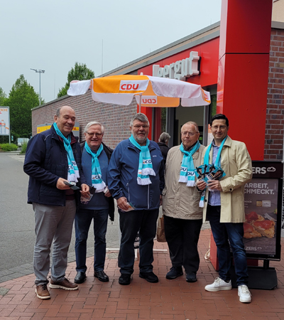 Infostände zur Europawahl Juni 2024 Der CDU-Ortsverband Gerthe/Hiltrop Bergen unterstützte mit zwei Infoständen in Hiltrop bei Rewe Lenk und in Gerthe am Marktplatz.