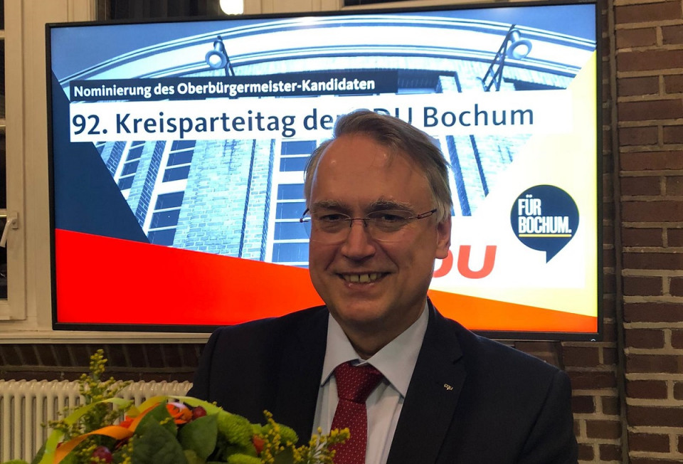 Die Bochumer CDU-Mitglieder waren am Donnerstag, dem 14. November 2019, aufgefordert, einen Kandidaten für die Oberbürgermeisterwahl im kommenden Jahr aufzustellen. Auf Christian Haardt, dem Kreis- und Fraktionsvorsitzenden der Bochumer CDU, entfielen 143 Ja-Stimmen, bei 14 Nein-Stimmen und drei Enthaltungen. Dies ergibt eine relative Zustimmung von 91,1%.