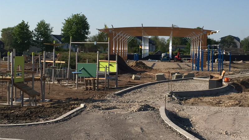 Baustelle Urban Green Am HausackerDie Entwicklung des ehemaligen Sportplatzes am Hausacker zum Urban Green schreitet zügig voran. Wesentliche Baumaßnahmen sind schon fertig gestellt. Noch in diesem Jahr soll das Projekt beendet werden. Die CDU Riemke freut sich über diese Entwicklung.