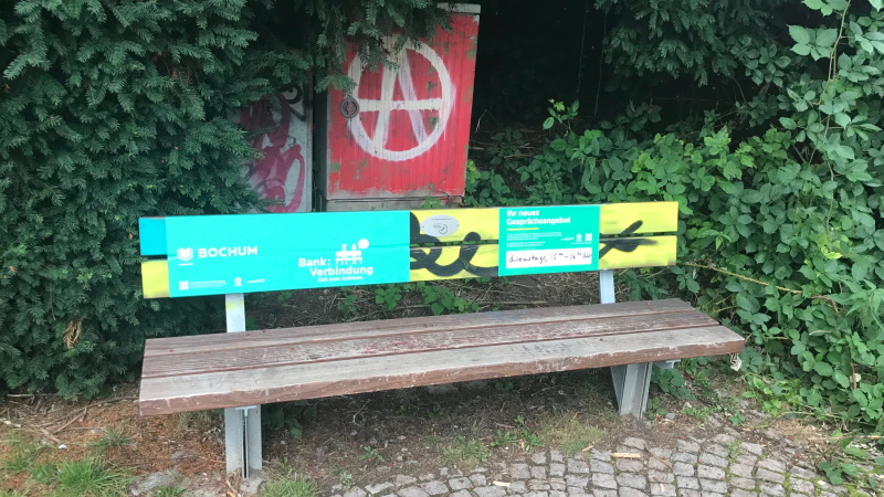 Die Stadt Bochum hat das Projekt „Bank:Verbindungen“ ins Leben gerufen, bei dem in Kooperation mit Bochumer Seniorenbüros und Quartiersprojekten Gesprächsangebote in Zeiten von Einsamkeit und wenigen Kontakten geschaffen werden. Dabei wurden Bankstandorte auch im Ehrenfeld ausgewählt, an denen Tafeln auf das Projekt und die Termine der Gesprächsmöglichkeiten hinweisen.