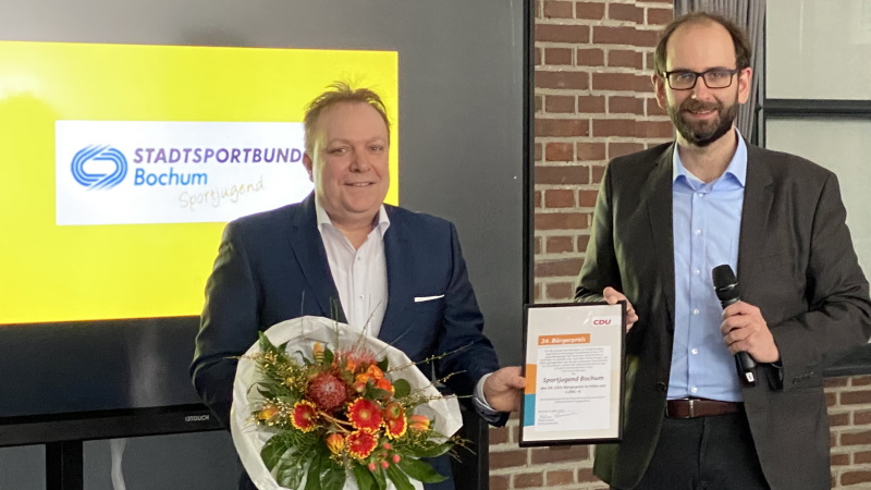 Der 24. CDU-Bürgerpreis wurde kürzlich in einer Feierstunde an die Sportjugend im Stadtsportbund Bochum verliehen. Der Kommunalexperte der CDU NRW, Dr. Jan Heinisch hob in seiner Laudatio das außergewöhnliche Engagement und ging auf die wichtige Bedeutung bürgerschaftlichen Engagements ein.