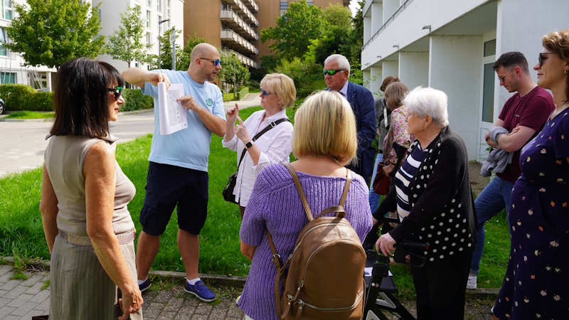 Begleitet wurde der Spaziergang auch von der Vorsitzenden im Ausschuss für Planung und Grundstücke (APG), Elke Janura, sowie dem Ausschusssprecher der CDU, Maurice Schirmer, die als erfahrene Gesprächspartner Auskunft zu Bauvorhaben im Stadtteil geben konnten und für die Fragen der Teilnehmenden zur Verfügung standen.