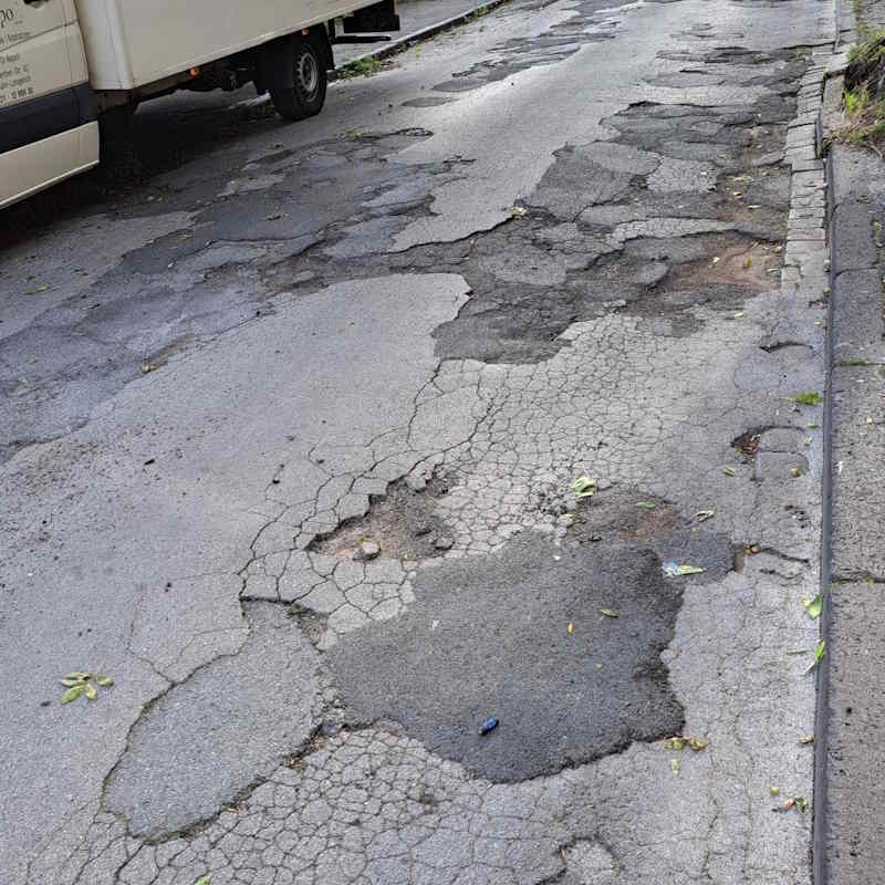 „Bereits im letzten Sommer haben wir uns bei einem Ortstermineinen einen Eindruck über die Situation verschafft. Die Straßendecke bietet ein verheerendes Bild. Die Anwohnerschaft ist von der halbherzigen Flickschusterei genervt, denn die sprichwörtliche Schüppe Kaltasphalt hält oft nur wenige Wochen“, berichtet CDU-Fraktionsvorsitzende Susanne Dewender.
