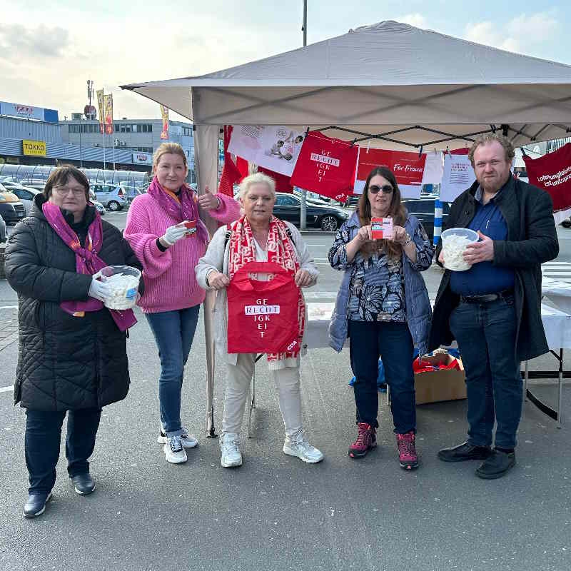 Der diesjährige Equal Pay Day fand am vergangenen Mittwoch (6. März 2024) statt. Er markiert symbolisch die Lohnlücke zwischen Männern und Frauen. Diese liegt momentan bei 18 Prozent. Rechnet man den Prozentwert in Tagen um, arbeiten Frauen 65 Tage, vom 1. Januar bis zum 6. März, unentgeltlich. Die Frauen Union und der CDU-Arbeitnehmerflügel CDA gingen an diesem Tag auf die Straße, zeigten Flagge und sprachen am Infostand auf dem Gelände des Hannibal Centers mit Bürgerinnen und Bürgern.