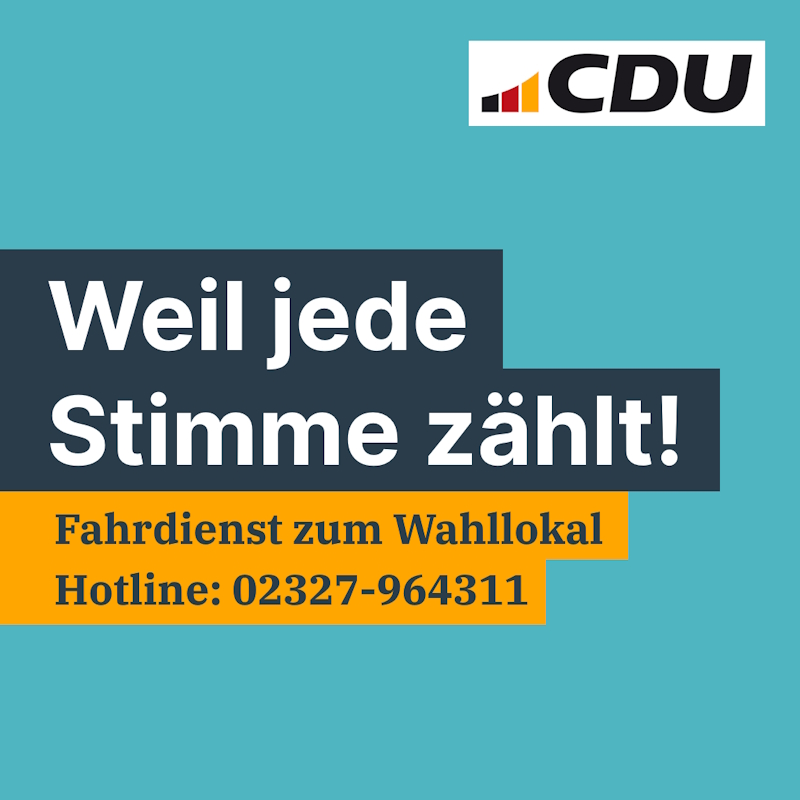 Zur Kommunalwahl am 14. September 2025 bietet die CDU Bochum wieder einen Fahrdienst zu den Wahllokalen an. Dieser steht am Wahltag von 09:00 bis 16:00 Uhr zur Verfügung. Damit möchte die Partei sicherstellen, dass alle Bürgerinnen und Bürger problemlos ihre Stimme abgeben können – unabhängig von Mobilität oder Entfernung zum Wahllokal.