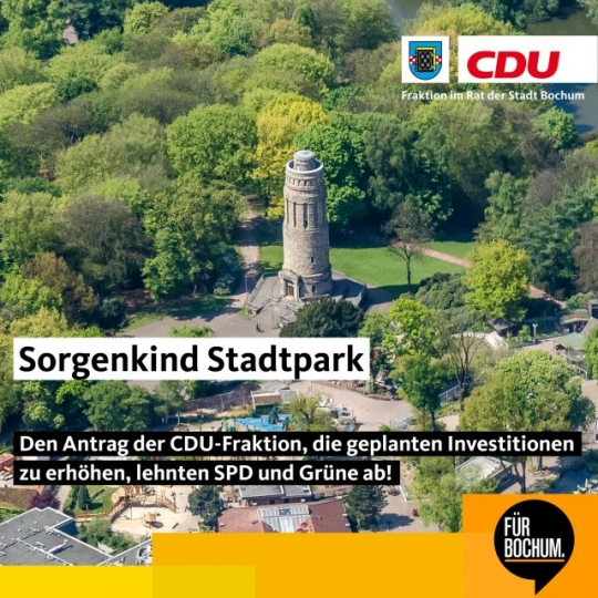 „Im Stadtpark besteht schon seit langer Zeit ein vielfältiger Sanierungsbedarf. Die Bochumer Bürger/innen wünschen sich endlich einen attraktiven Park zum Verweilen und Entspannen. Mit den aktuell eingeplanten Haushaltsmitteln von jährlich 200.000 Euro wird es sogar kaum zu schaffen sein, den Park für die im Jahr 2026 stattfindende 150-Jahr-Feier standesgemäß herzurichten“, so Ratsmitglied Dr. Stefan Jox.