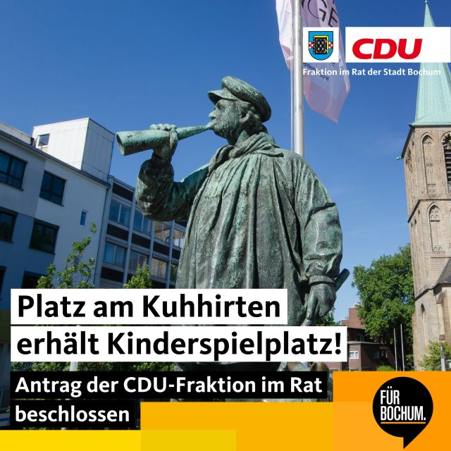 Auf Antrag der CDU-Fraktion hat der Rat einstimmig beschlossen, einen attraktiven Kinderspielplatz auf dem Platz am Kuhhirten zu errichten, soweit dies technisch mach-bar ist.